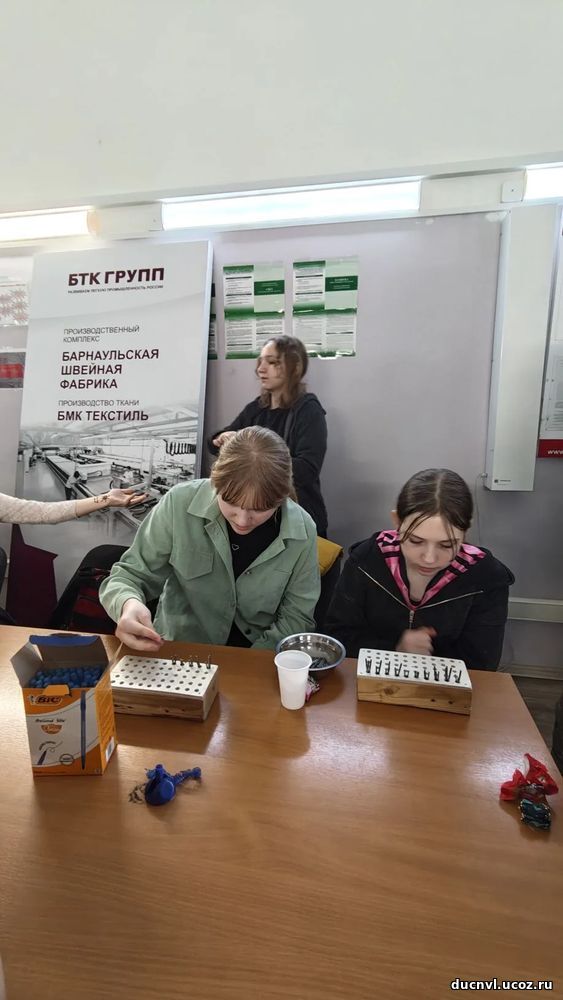 Представители центра обучения с неоспоримой теплотой поделились секретами карьерных перспектив на предприятии, с радушием распахнув двери для наших выпускниц. Вдохновляющий тест для будущих сотрудниц – настоящее испытание ловкости пальцев – включал в себя вставку трех палочек в каждую ячейку за 29 секунд. Наши талантливые девушки, обладающие феноменальной мелкой моторикой, не просто справились, а сделали это еще быстрее, уложившись в рекордные 24 секунды!