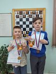 Второе место у младших занял Роман Комков (СОШ №15, 6 очков). Примечательно, что в его активе значатся победы над двумя лидерами общего зачета — Павлом Швемлером и Владиславом Курмазом. Бронзовым призером среди младших школьников с 4,5 очками стал Кирилл Сахно.